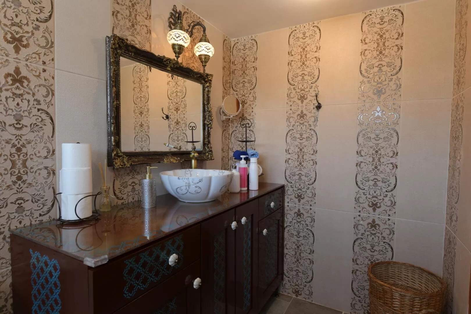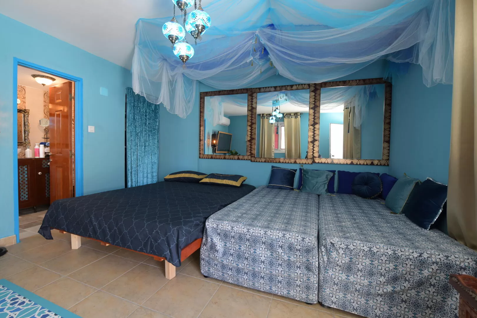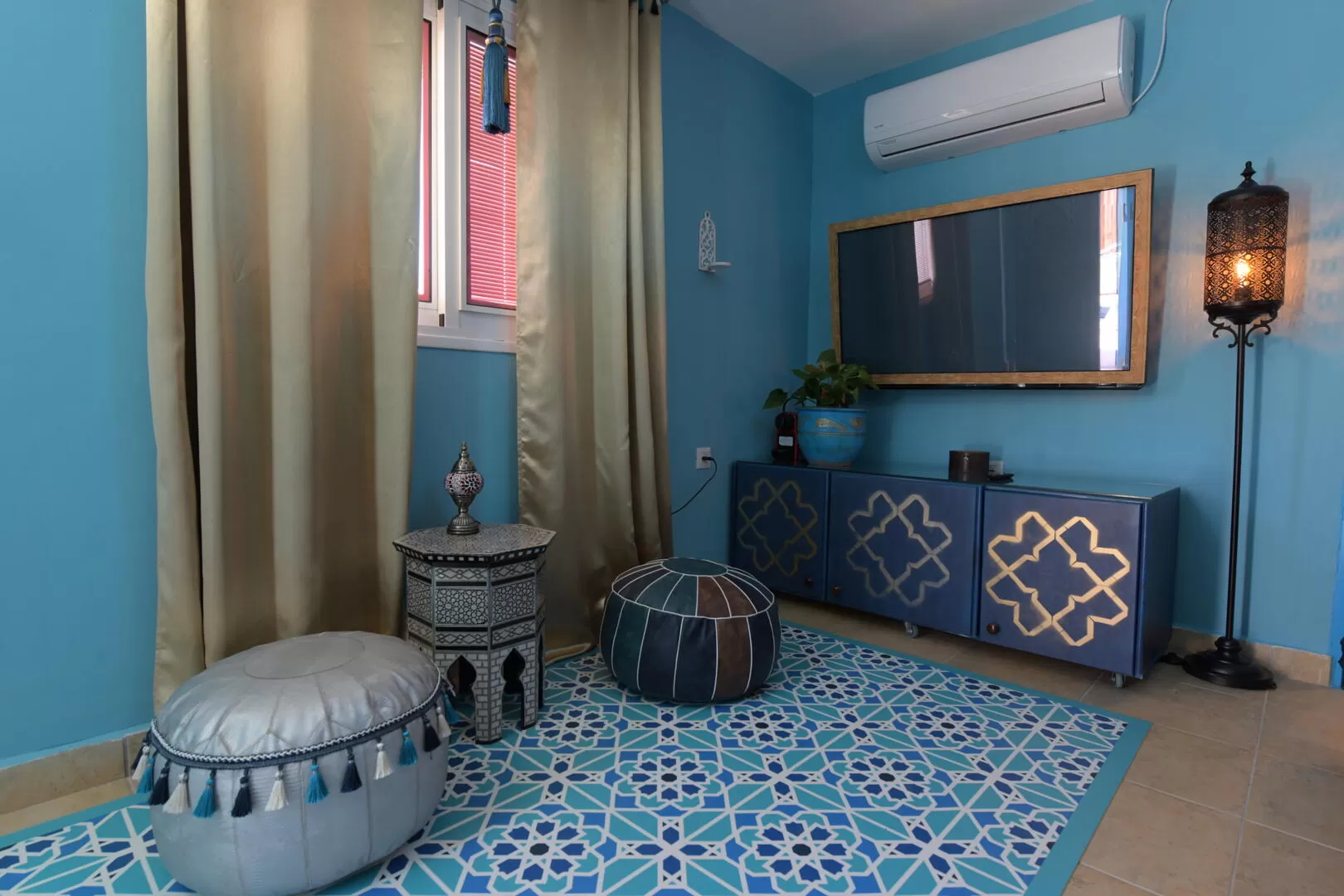 הצימר המרוקאי שופע צבעוניות אותנטית. הקירות שצבועים בתכלת עמוק מוסיפים המון אופי לחלל ומתמזגים מעולה בעיצוב הכללי. יש בו מרחב שינה ורביצה גדול ומזמין, פופים קטנים וכריות צבעוניות מוסיפים נינוחות למרחב, והאהילים המרוקאים היפים פוגשים אותנו גם כאן וגם בחדר הרחצה המעוצב היטב, עם ראש גשם גדול ומפנק. בקיצור, כשמרוקו פגשה את אילת זה כאן.
