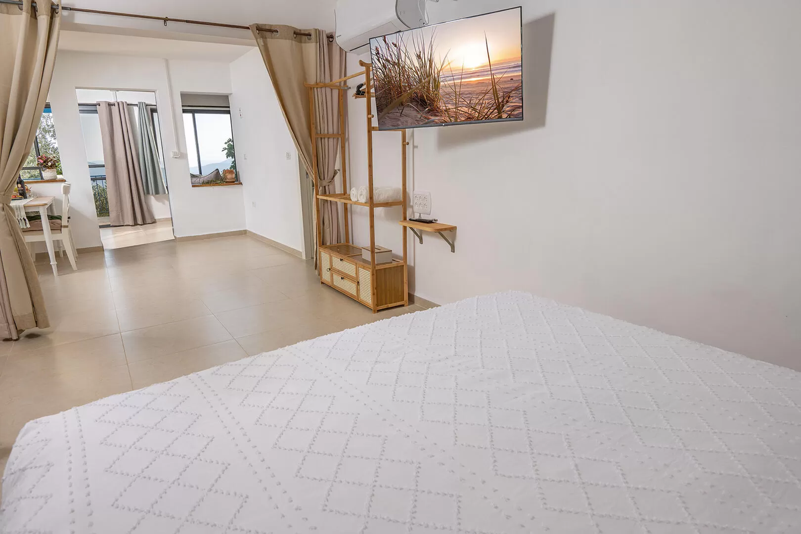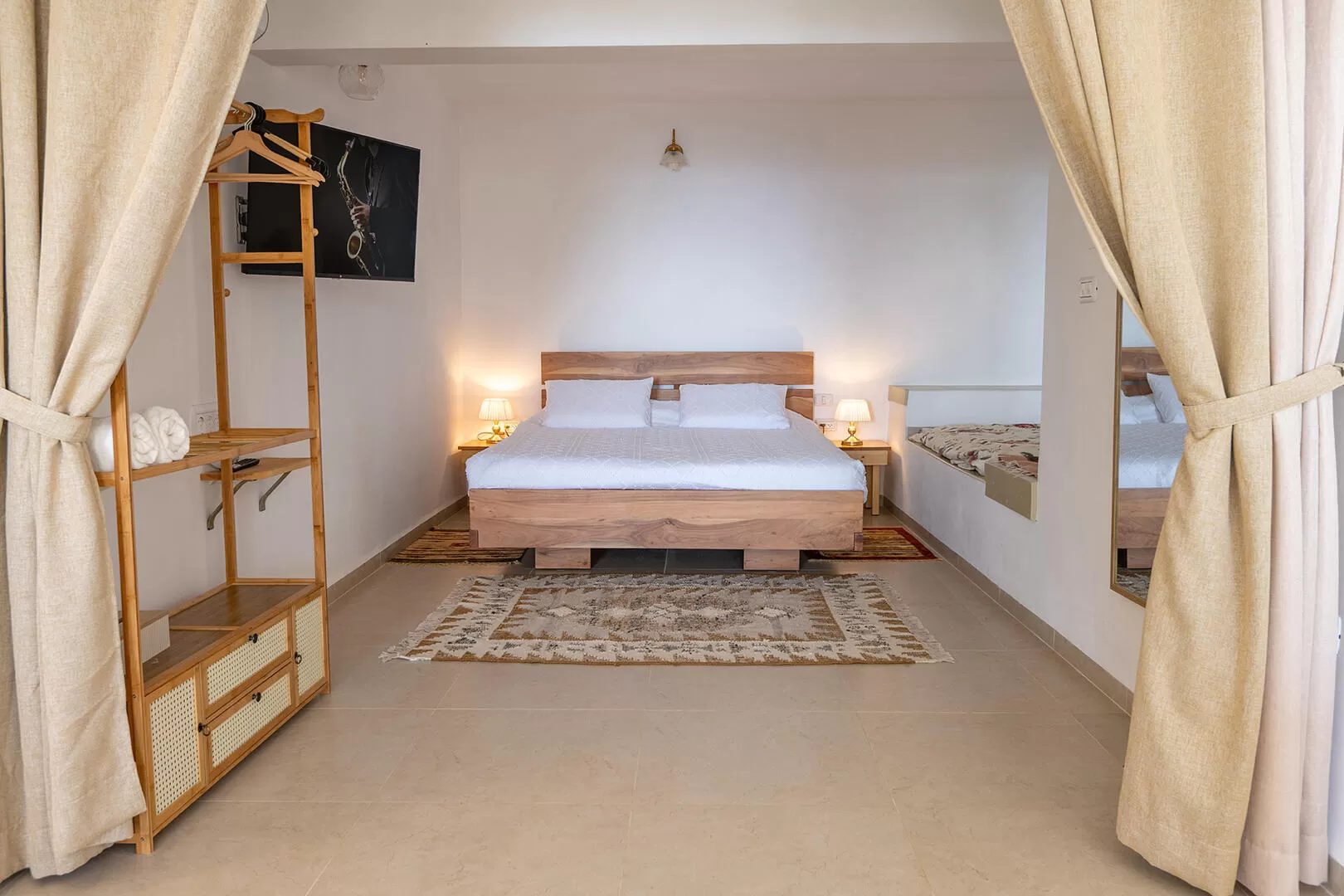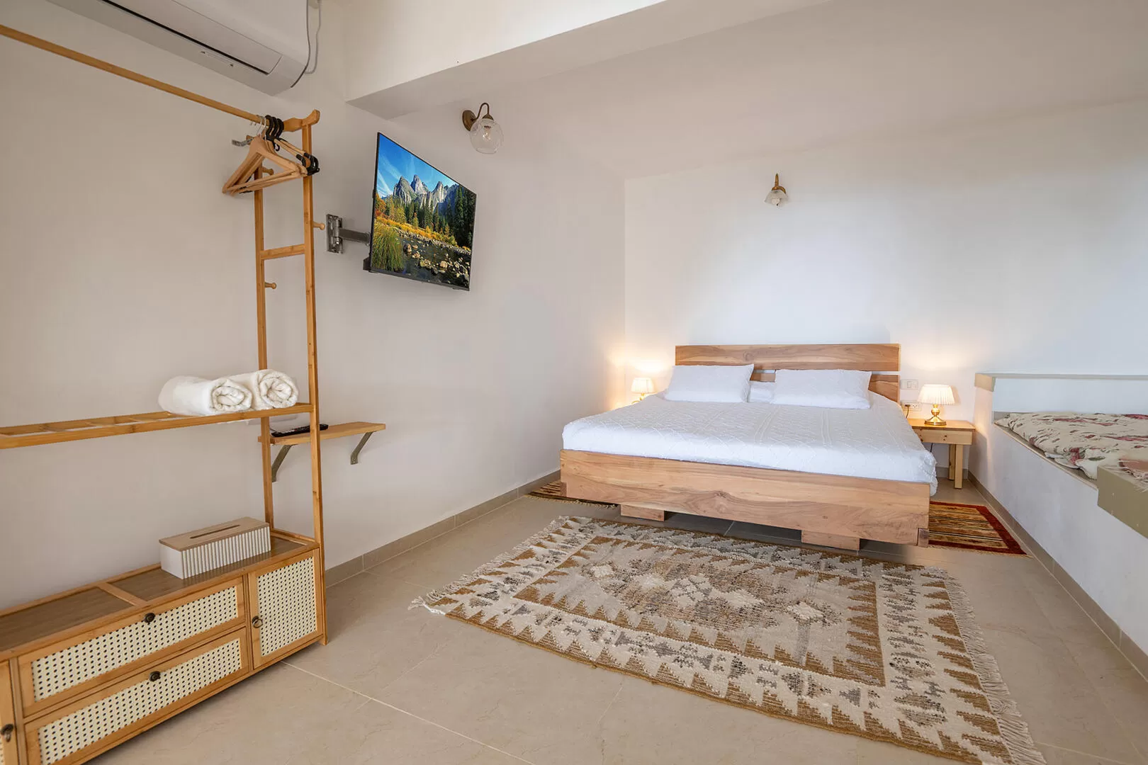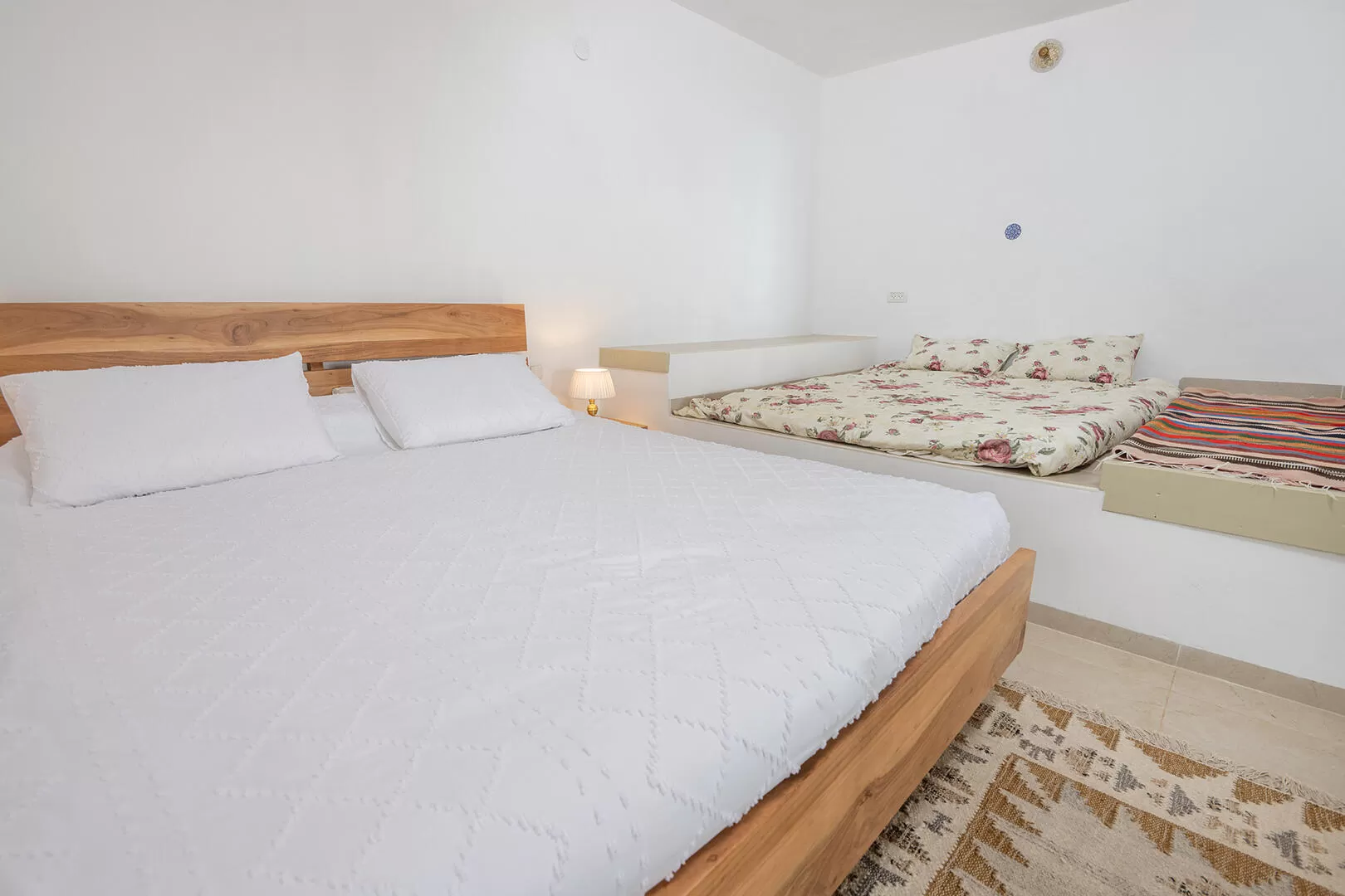 - מיטה זוגית (140) בתוך נישה ליד מיטת ההורים ומתאימה לשני ילדים