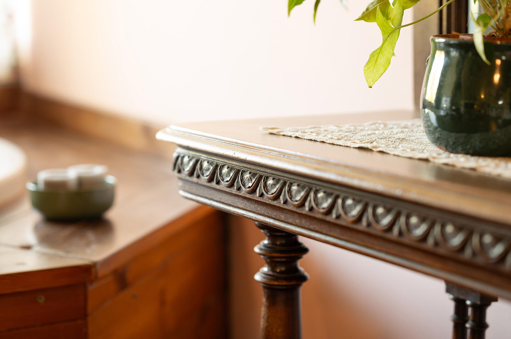האווירה הייחודית מושגת באמצעות הריהוט העתיק, אשר נרכש מאוספים פרטיים בחו"ל, ובאמצעות שימוש נבון בפרטי אבזור "תקופתיים" ופלטת צבעים שהותאמה בקפידה לרוח התקופה.
