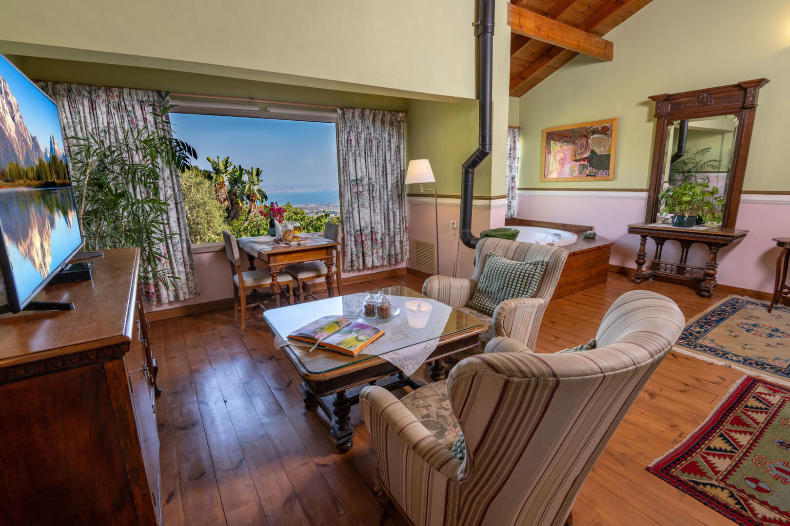 ואם בתוך הסוויטה אתם עטופים באווירה אירופאית, הרי מרפסת הנוף הרחבה "מחזירה" אותנו הביתה. מראה הרי הגליל, הכנרת ורמת הגולן נפתח אל מול עיני האורחים, ויוצר תמונת נוף "כנענית", האוספת בתוכה כמעט את כל מפת הצפון.