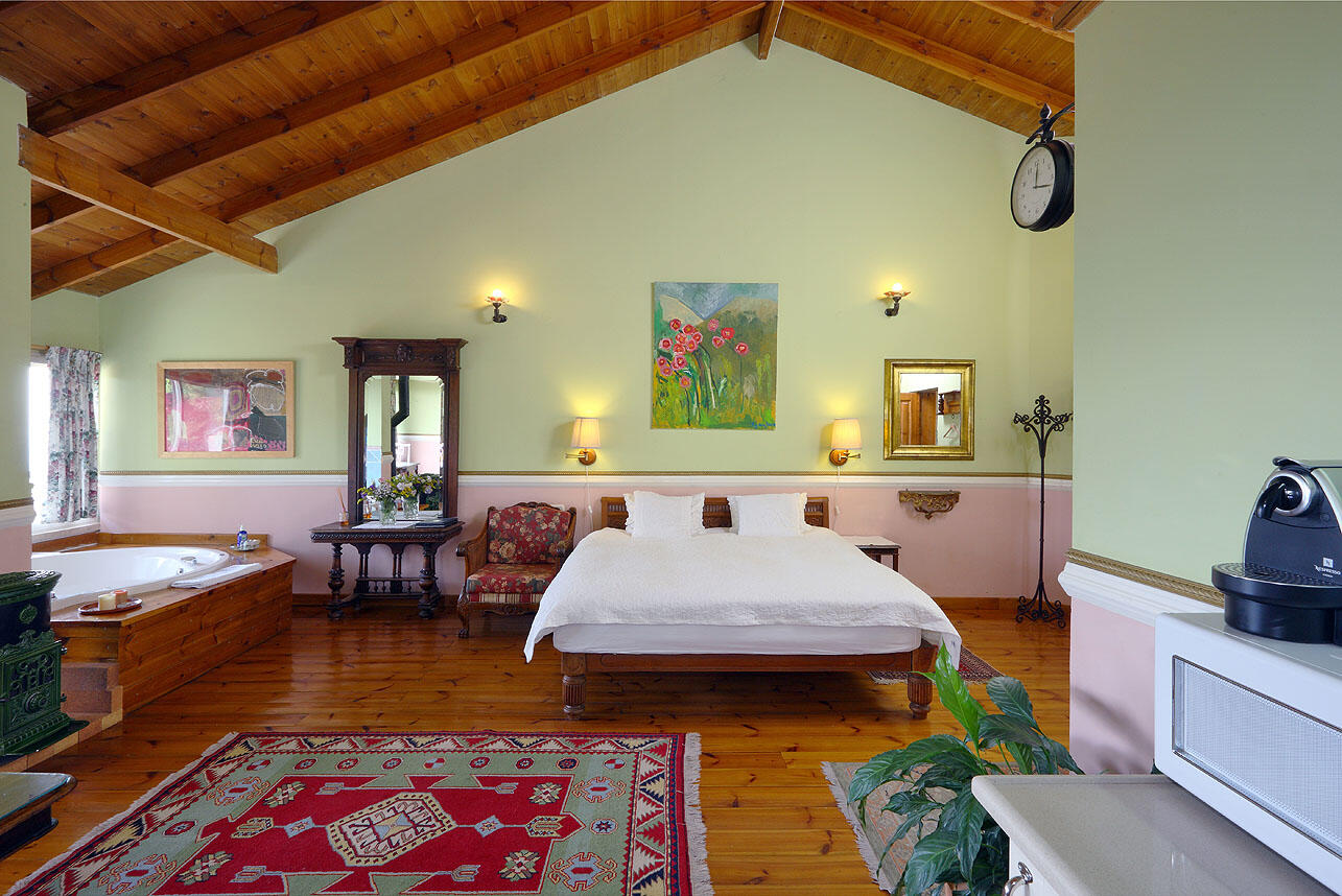 לכל סוויטה כאן יש מרפסת רחבה הצופה אל נוף, קמין GODIN (בדגם אשר לא השתנה כבר 500 שנה), ג'קוזי גדול ועוד. התקרות כאן גבוהות במיוחד. בעודי עוברת בין סוויטה לסוויטה, עוצרת ליד פריטים נדירים שתפסו את עיניי, מספרת לי בלה, המארחת, אודות ההיסטוריה של המראה העתיקה במסגרת המוזהבת, של גוף התאורה המרשים שמשתלשל מהתקרה, של השטיח האקזוטי מימים ימימה– לכל חפץ כאן יש עבר מרתק, אופי וסיפור.