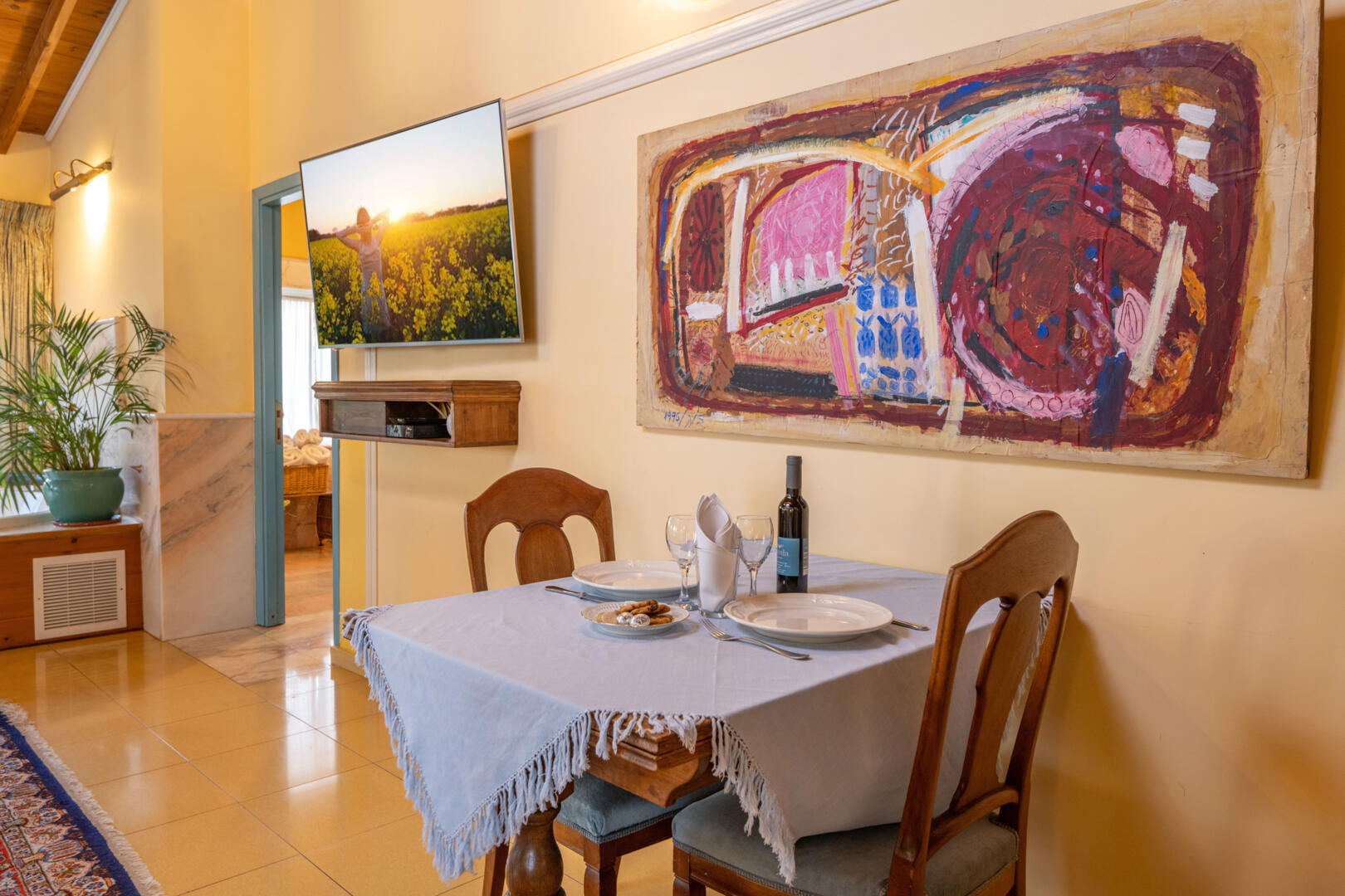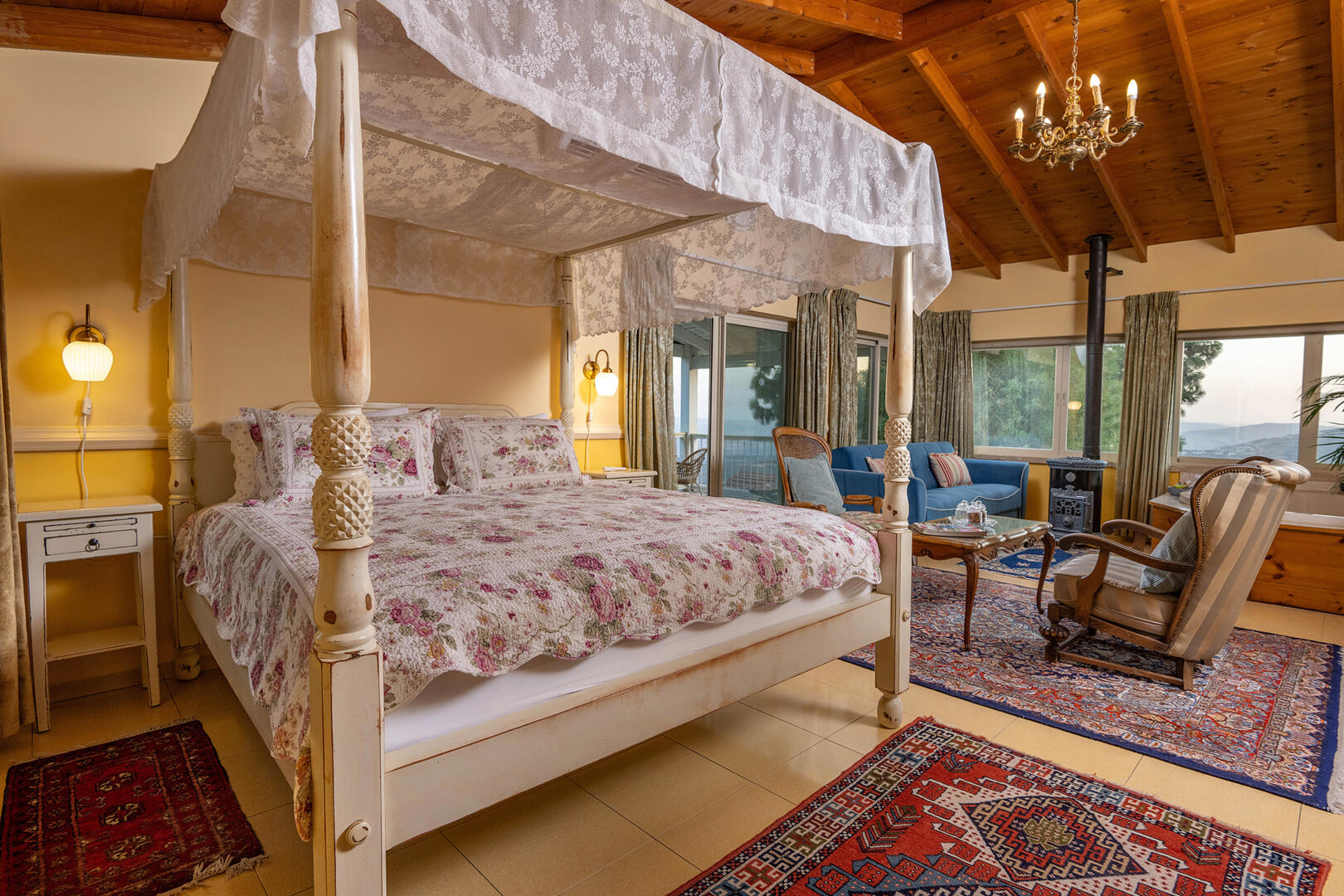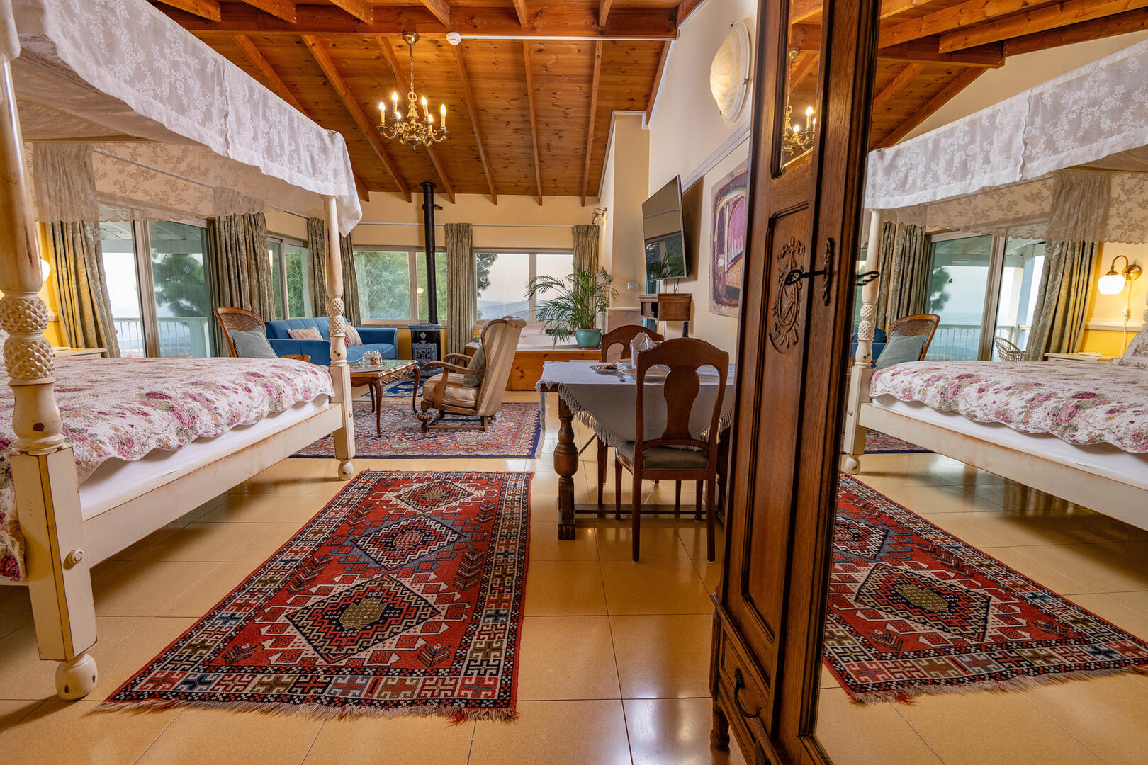 האורחים ימצאו כאן מיטת אפריון גדולה ורומנטית, פינת סלון מריהוט צרפתי מקורי עתיק, חדר רחצה משיש פורטוגלי ורוד עם מקלחון ראש גשם עגול, וכמובן – מרפסת "דק" מעץ מולבן הצופה אל נוף פתוח, המחבר את הארבל, הר תבור, הכנרת ורמת הגולן, אל תוך תמונה פנורמית מרהיבה.