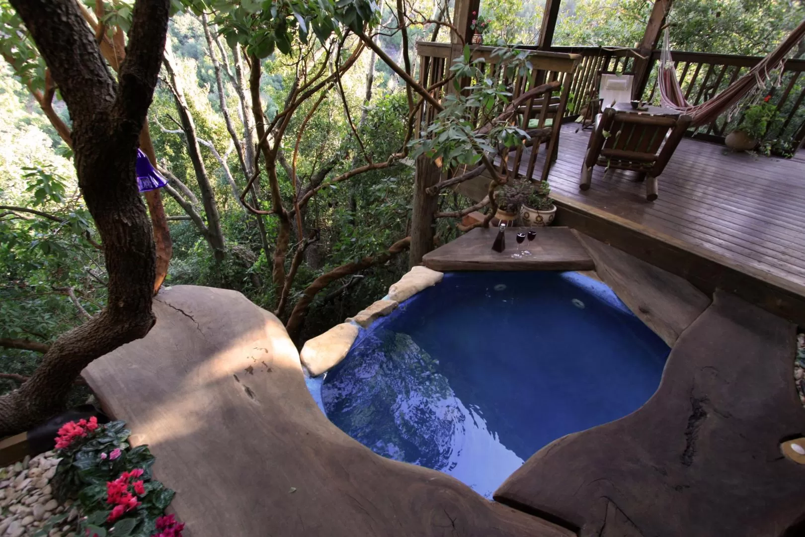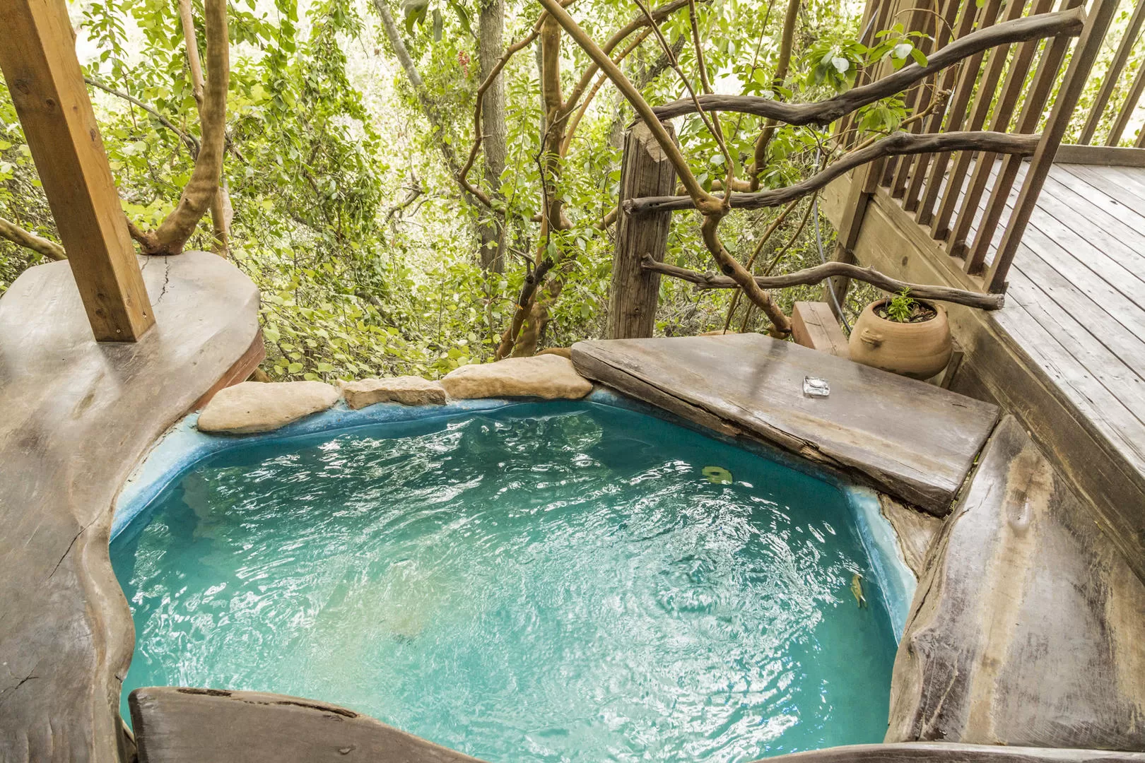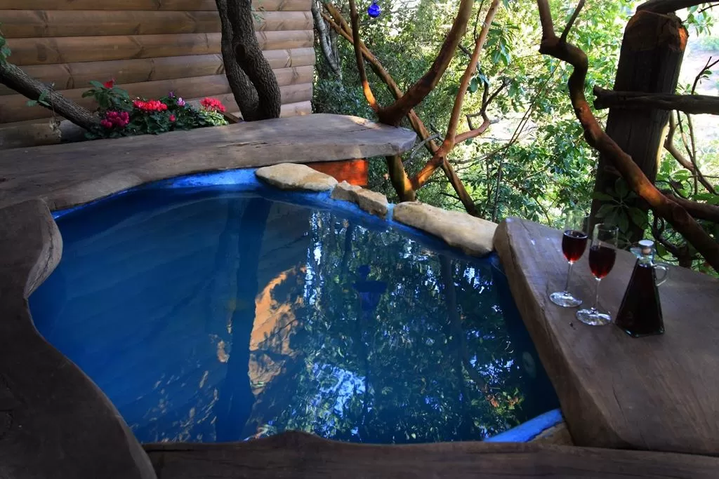 בבקתה מרפסת "דק", המשולבת באופן טבעי בנוף היער וצופה להרים הסמוכים. הבקתה מציעה פינות ישיבה, פינת אוכל, ערסל, וג'קוזי ספא טבעי. לג'קוזי ספא זה מגיעה התייחסות מיוחדת: מדובר ב"בריכה" טבעית, הבנויה בעבודת יד בשימוש בחומרים מן הטבע. הג'קוזי ממוקם בין העצים וכאילו "תלוי באוויר".