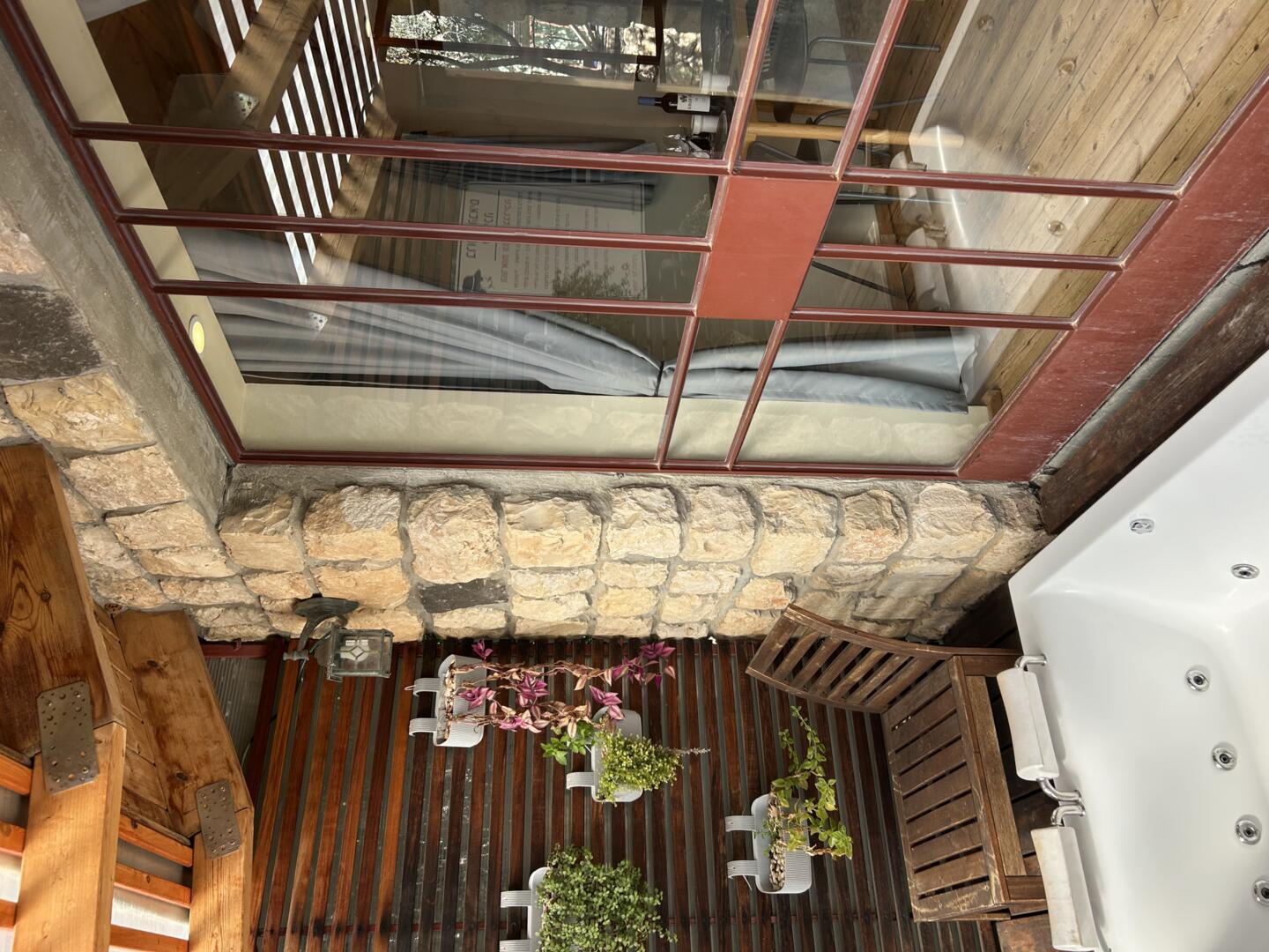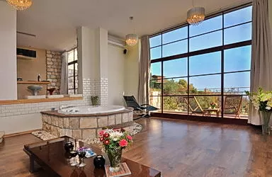 המרפסת החיצונית, הבנויה לאורכם של שניים מקירות הלופט הרחבים, מהווה מצפה מדהים, ובה זוג כסאות נוח מפנקים, העשויים עץ ובד בהיר, וכן שולחן וזוג כסאות מפורזלים בהם ניתן לשבת ולהתענג מתחושת השהייה 'על גג העולם'. ג'קוזי ספא פרטי השוכן כאן, משלים את כל מה שצריך.