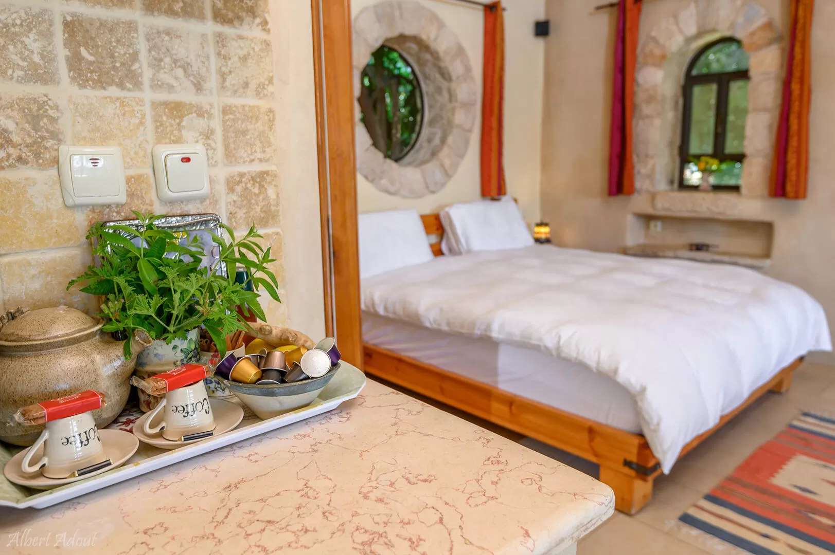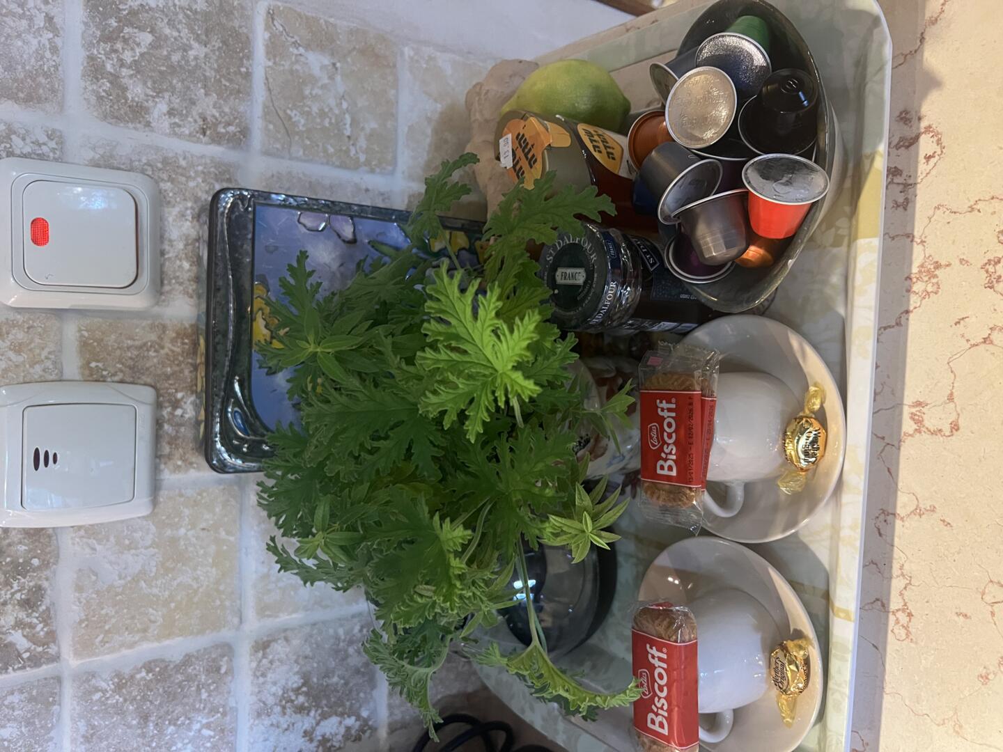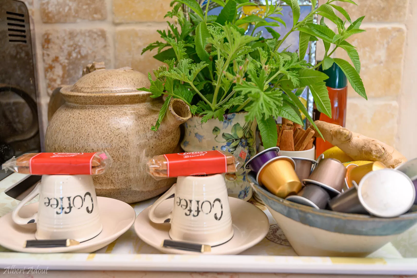 - פינת קפה ותה כולל עשבי תיבול בגינה