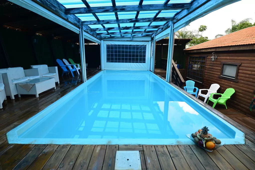 קירוי בריכת השחיה מוצלת מפני קרני השמש