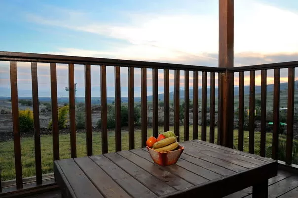מרפסת "דק" רחבת ידיים מקיפה את הבקתות ומאפשרת מרחב שהיה פסטורלי נוסף. גם כאן תמצאו פינות אוכל וישיבה מפנקות.