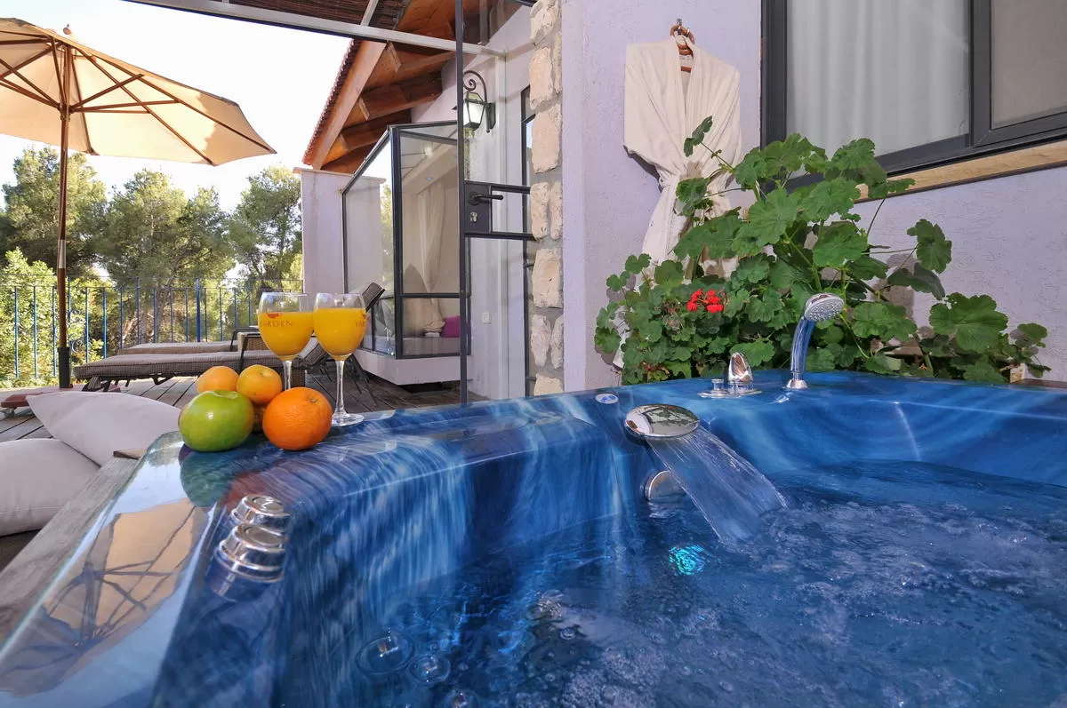בריכות מחוממות בכל הסוויטות את התחושה המבודדת והפרטית אל מול הנוף היפיפה הסוויטה "הקלאסית" מרווחת במיוחד, עם מתחם ספא פרטי הכולל בריכת אינפיניטי