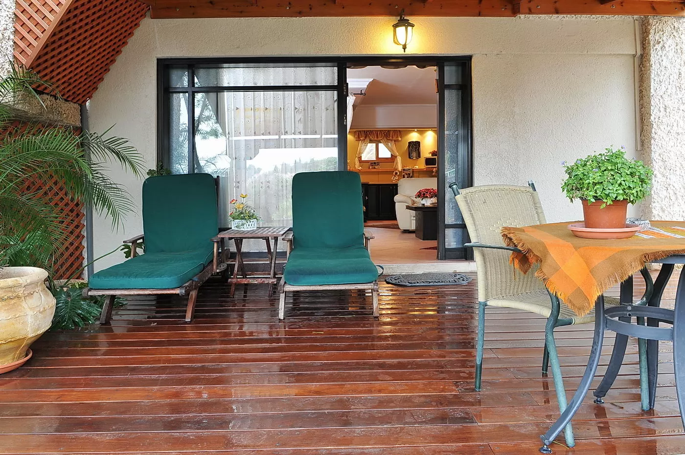 לבקתות מרפסת אישית זוגית בעלת אווירה נעימה וביתית. את תמונת המרחבים הפתוחים הנשקפים מהמרפסת מקשטים גם גגות הבתים של הישוב הסמוך. לבקתות מוצמדת בריכה מחוממת פרטית עם משטח "דק" צמוד ולסוויטה מוצמדת בריכת שכשוך מחוממת.